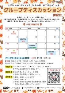 面接練習会(個人面接・集団面接・グループディスカッション)を対面、オンラインで行っています。
