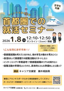 首都圏での就職に関心がある方向けに、就活セミナーを開催します。